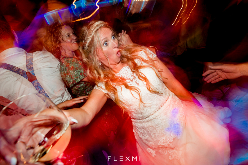 Op de dansvloer: flitsen in combinatie met beweging en DJ-licht geeft energievolle, dynamische beelden.
